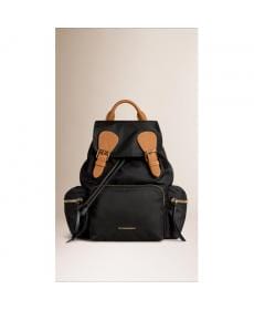 Burberry巴宝莉 黑色 帆布配皮 女士双肩背包