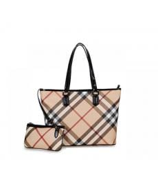 BURBERRY/巴宝莉/pvc配皮/女士单肩包/格子托特包/黑色