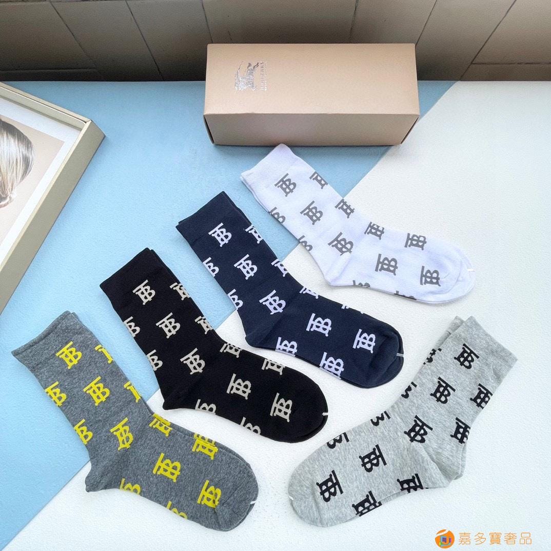 配包装【一盒五双】巴宝莉专柜最新款刺绣TB袜子??巴家专柜同