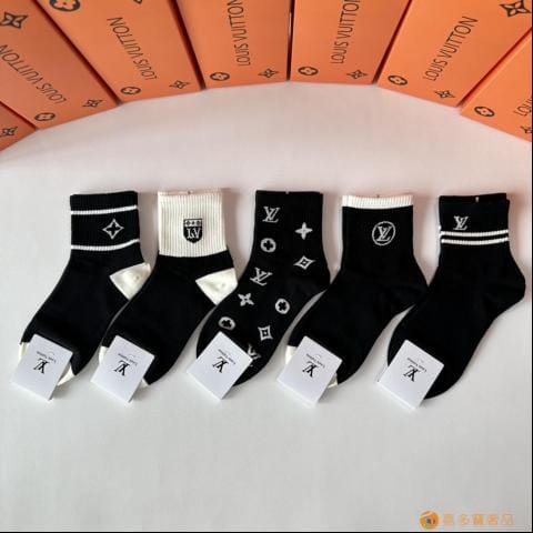 LV(路易威登)新款中长筒堆堆袜袜子!一盒五