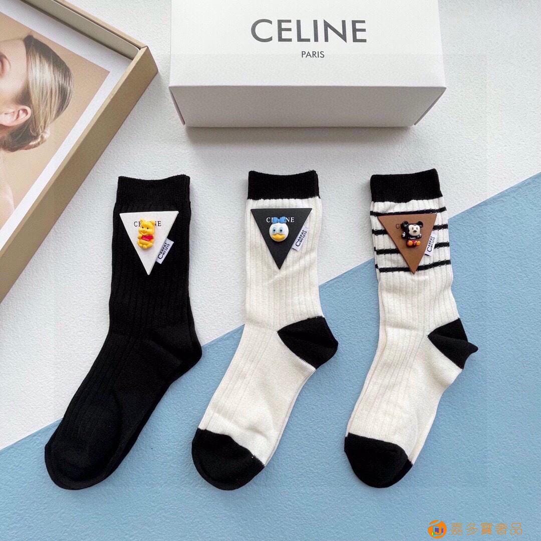配包装【一盒三双】?Celine赛琳 爆款中筒袜?高版本