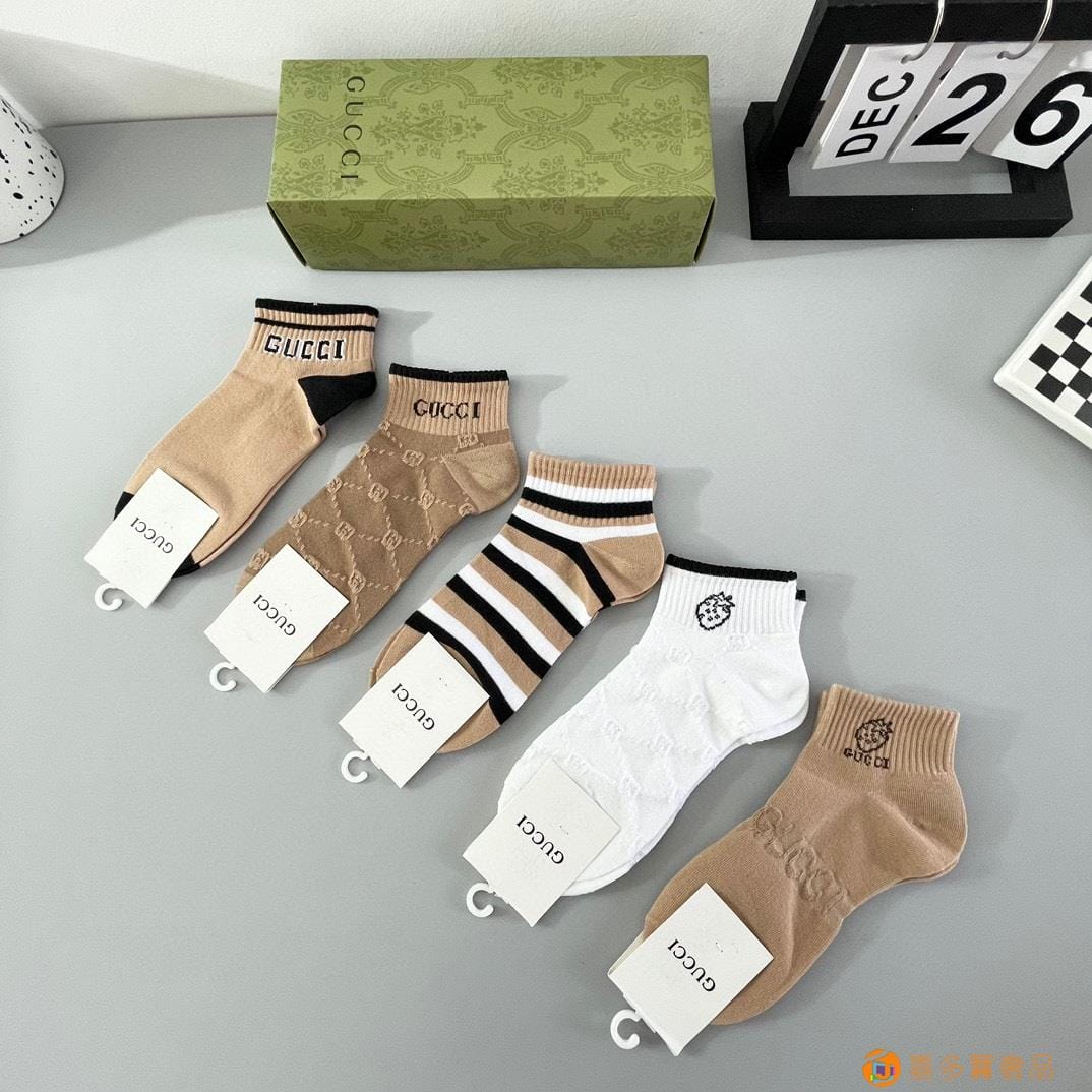 配包装【一盒五双】GUCCI古奇??新款短款冰丝袜子??冰丝