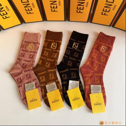 FENDI(芬迪)新款经典中长款刺绣堆堆袜袜子