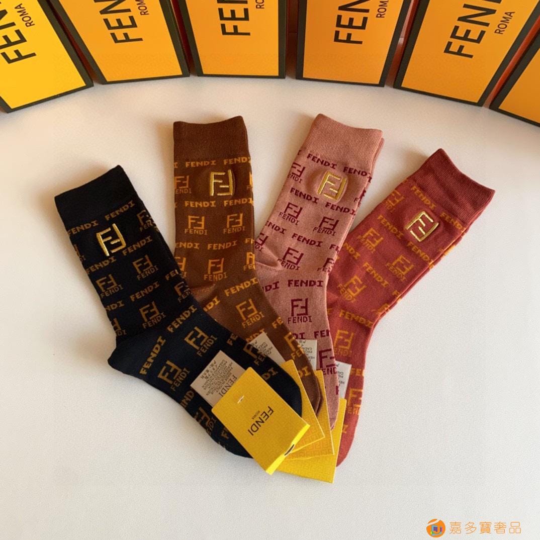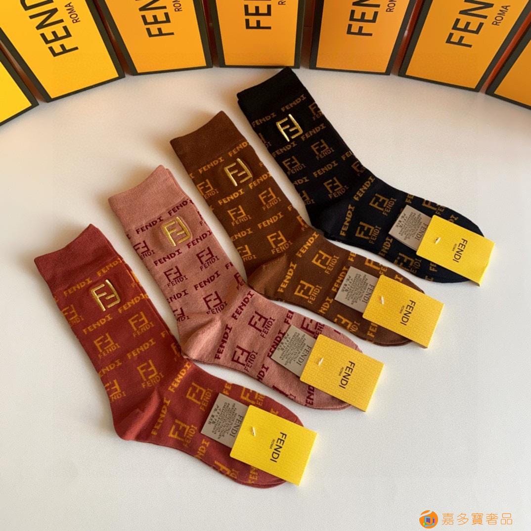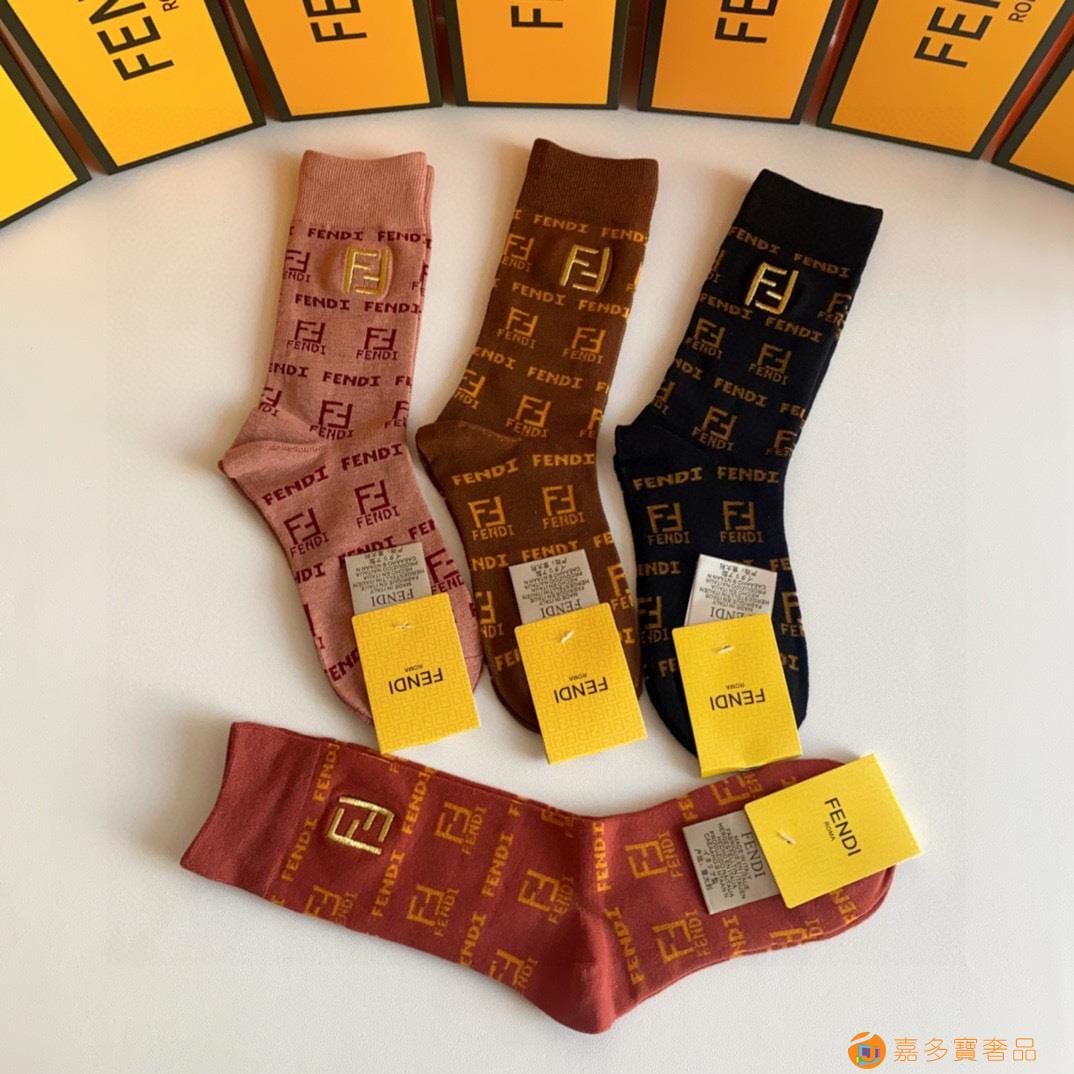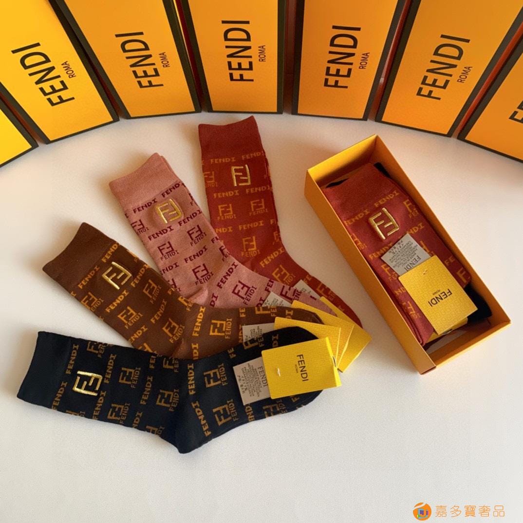 FENDI(芬迪)新款经典中长款刺绣堆堆袜袜子