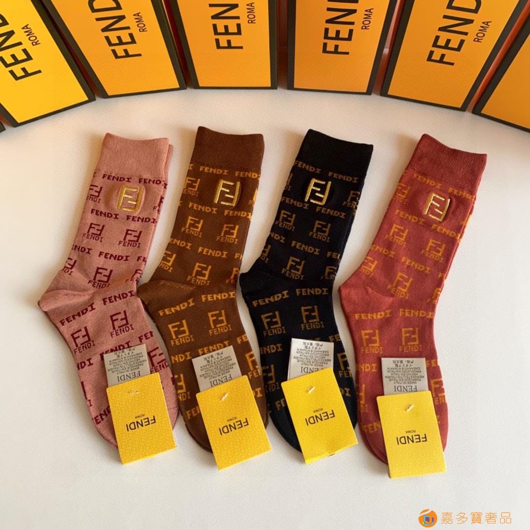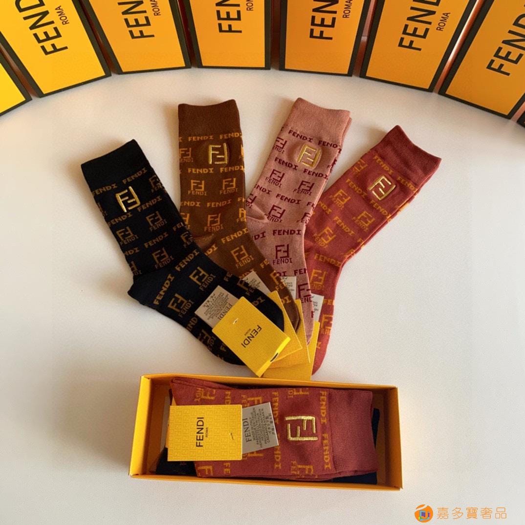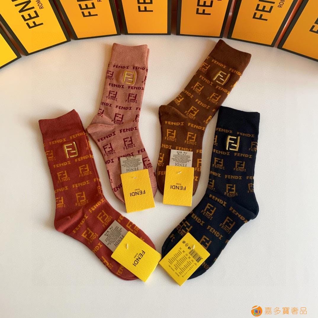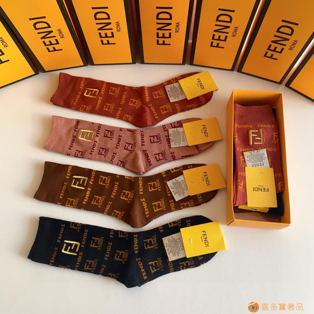 FENDI(芬迪)新款经典中长款刺绣堆堆袜袜子
