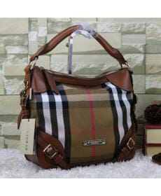 BURBERRY/巴宝莉/棕色/帆布配皮/女士手提包/单肩包/斜挎包1186