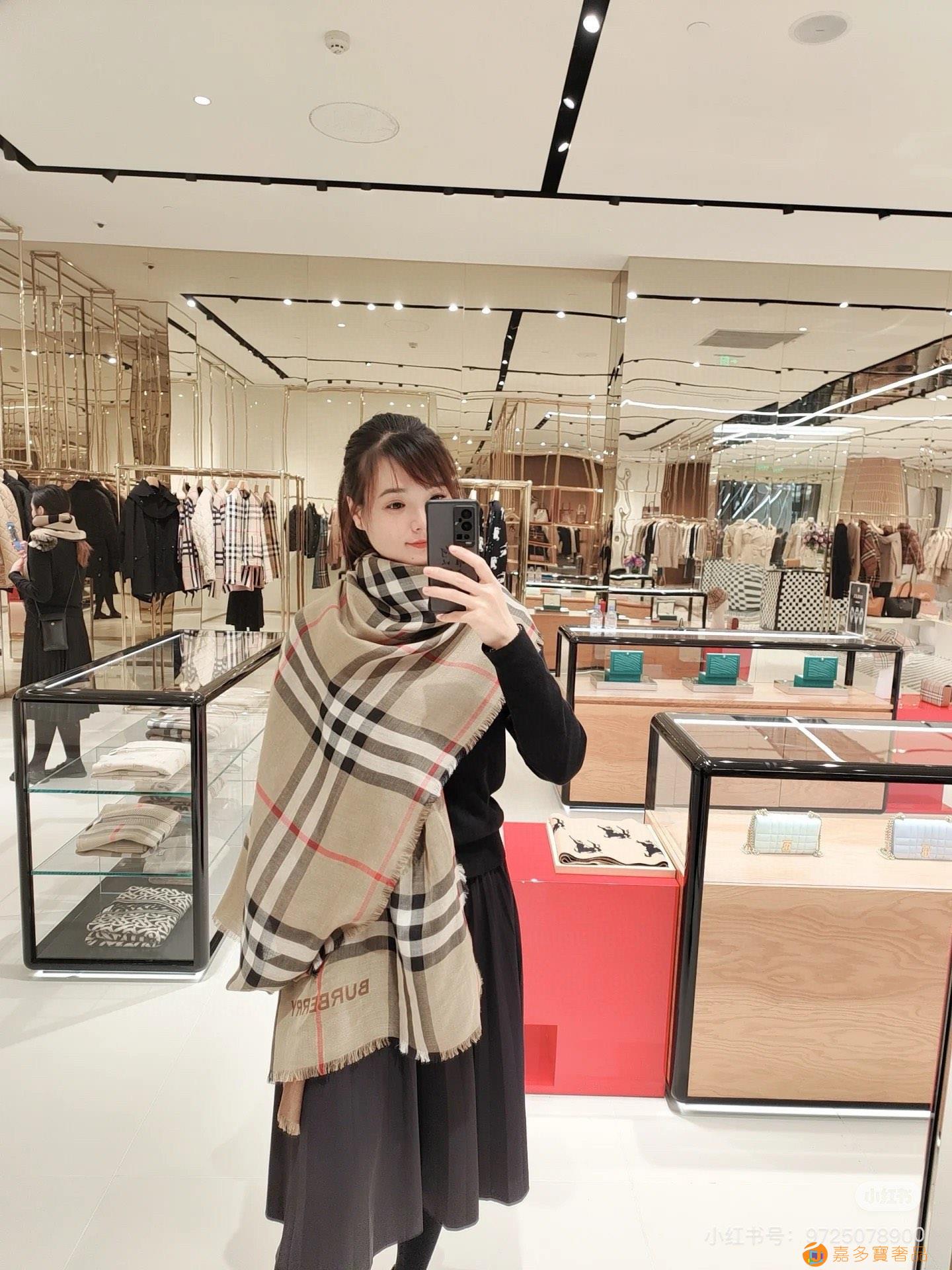 王牌口碑burberry深度水波纹经典羊绒格子围巾‼专柜最新
