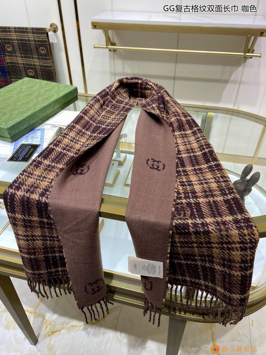 【GG复古格纹双面长巾】?经典GG图案是品牌在年代开始使用的