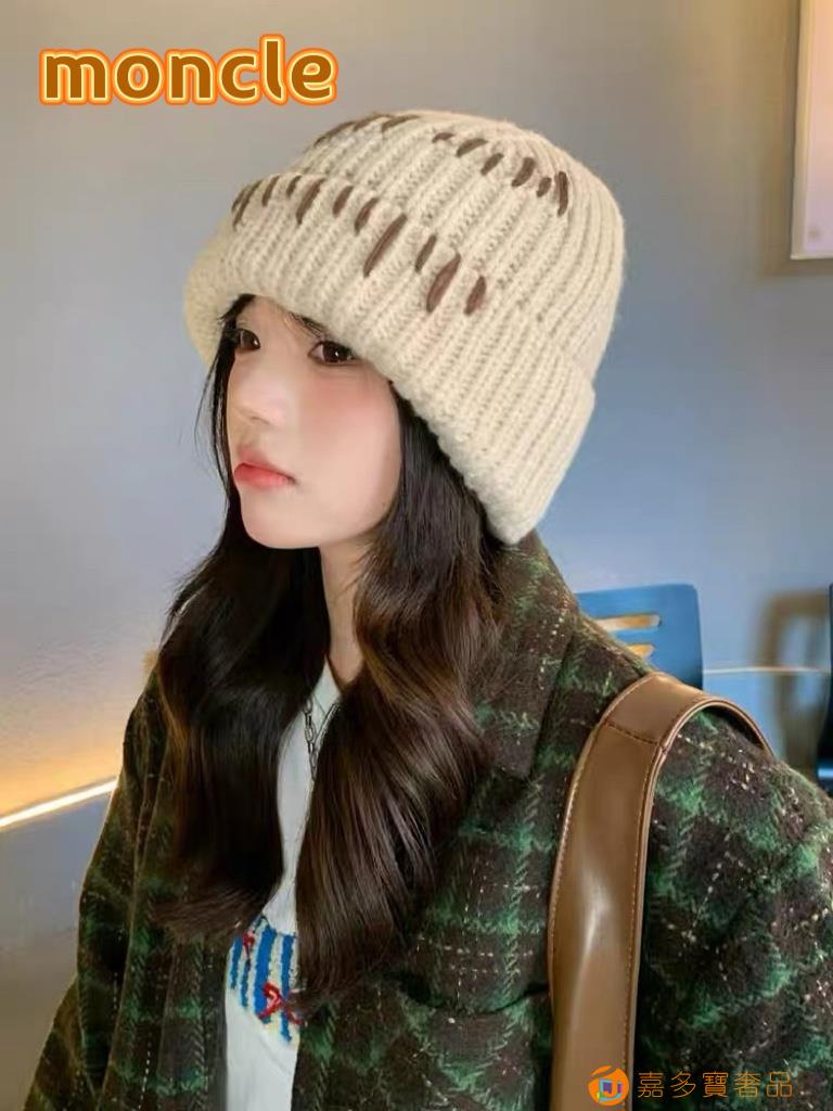蒙口moncler新款网红毛线帽子女加厚保暖护耳套头帽百搭显