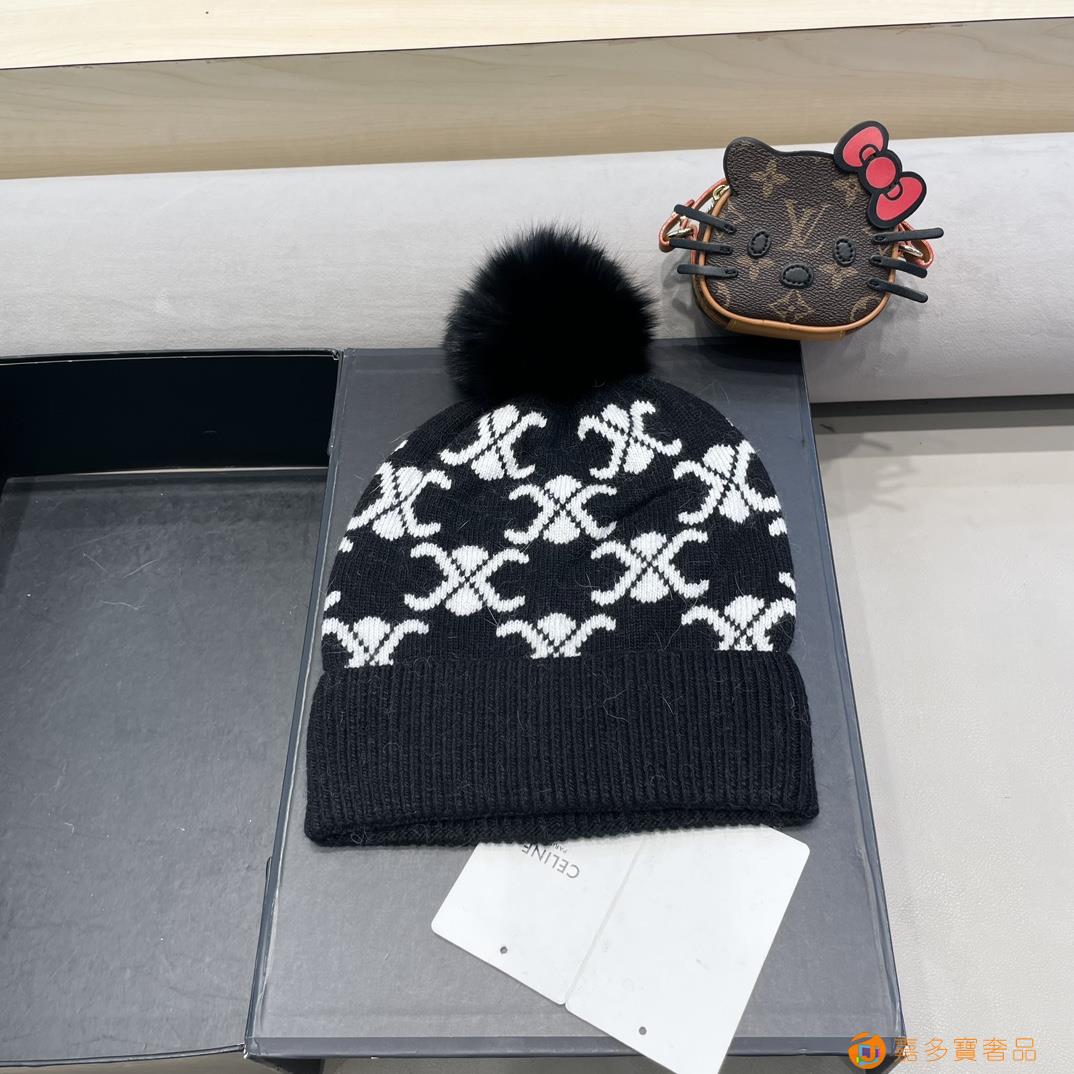 塞琳Celine羊绒+兔毛帽子女纯重磅推荐护耳狐狸毛球球针织