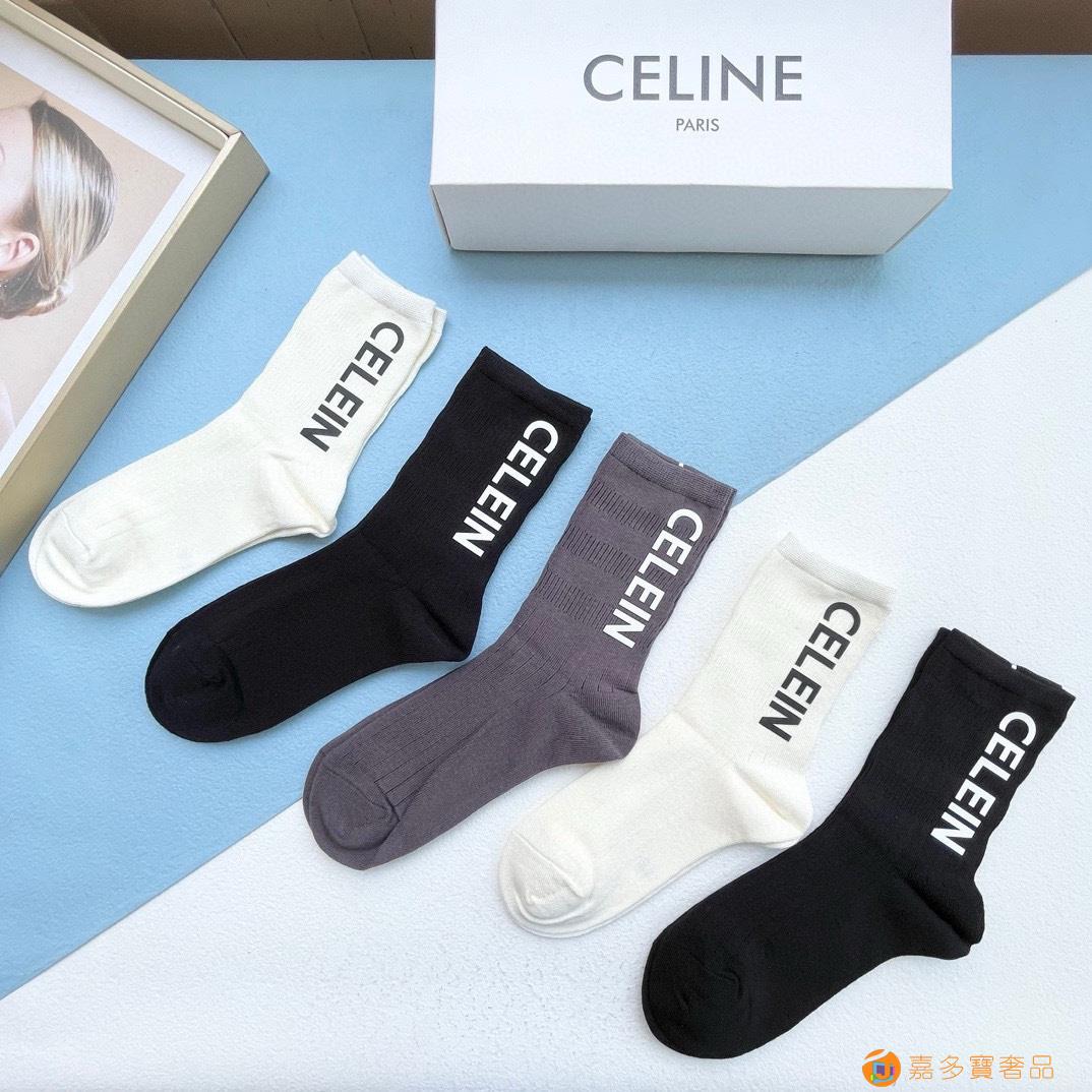 配包装【一盒五双】?Celine赛琳 爆款中筒袜?高版本