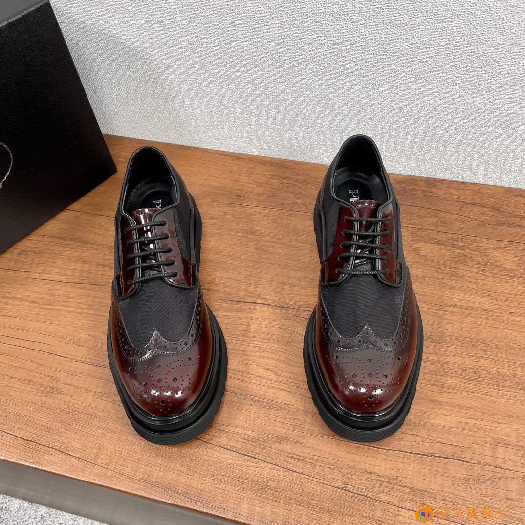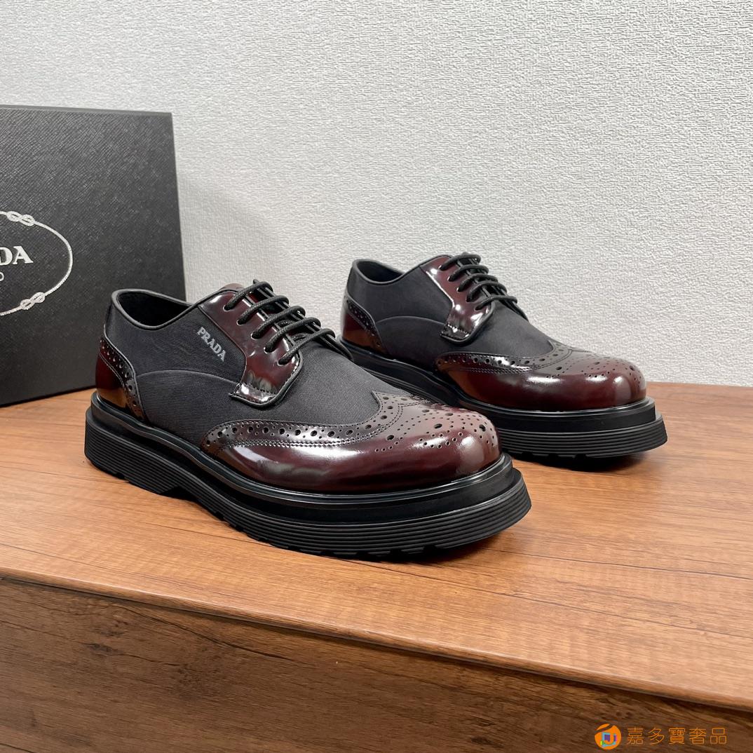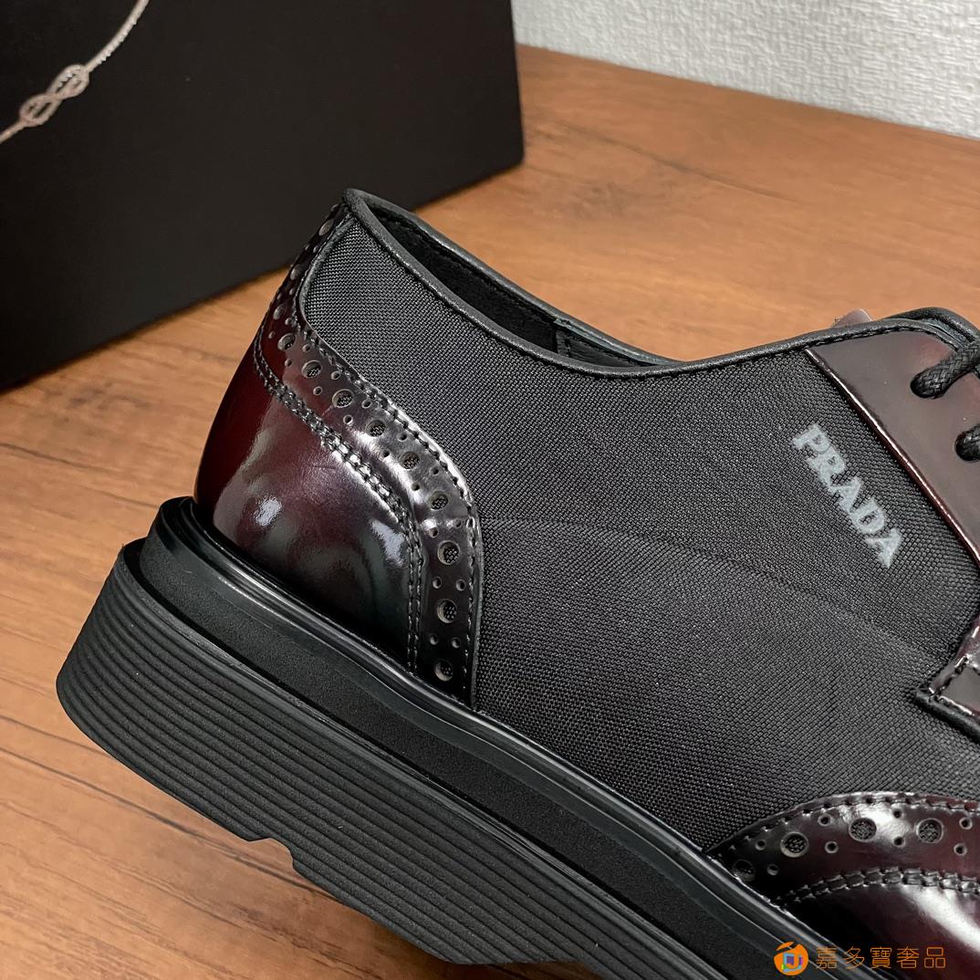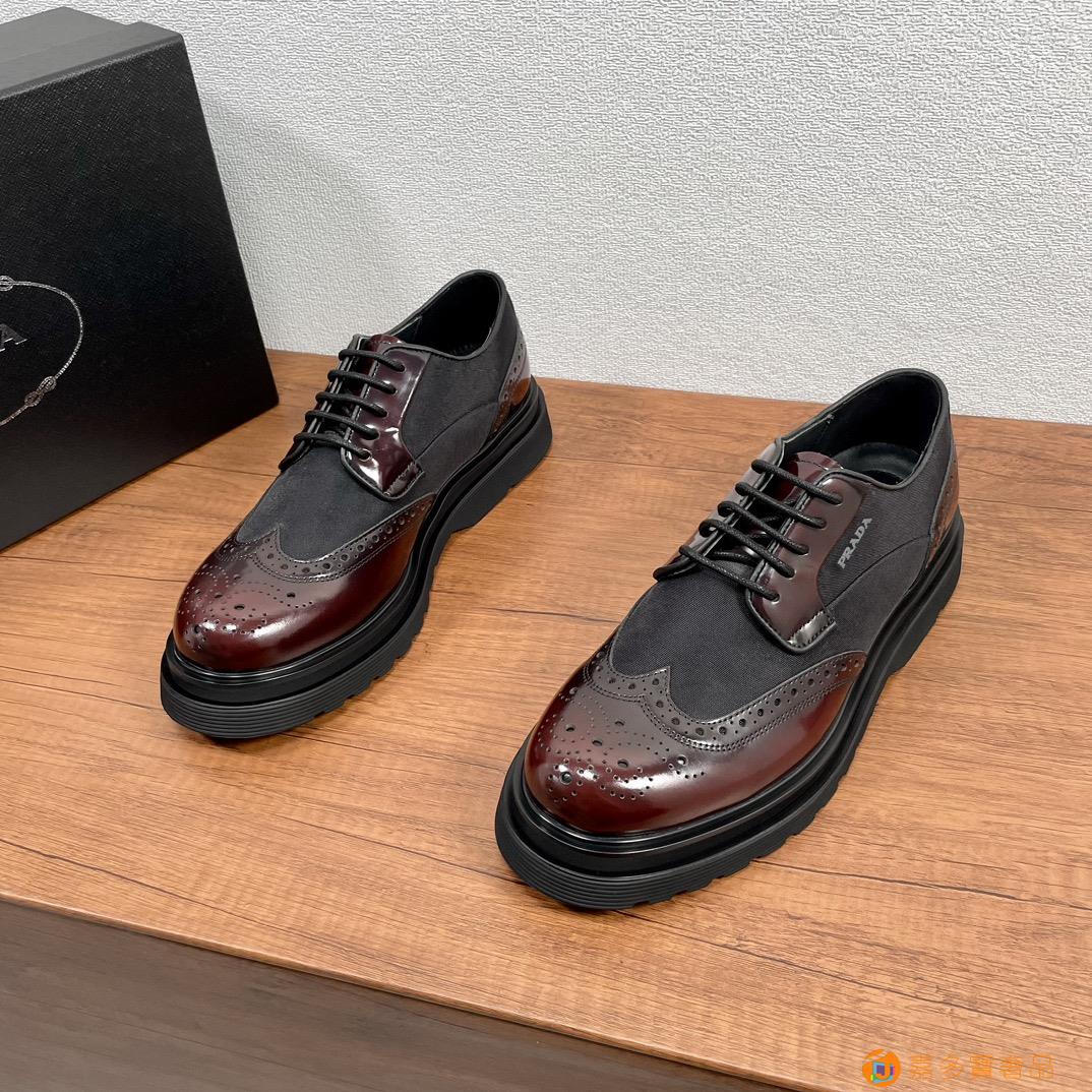 RADA/普拉达 男士新款皮革织物系带德比鞋