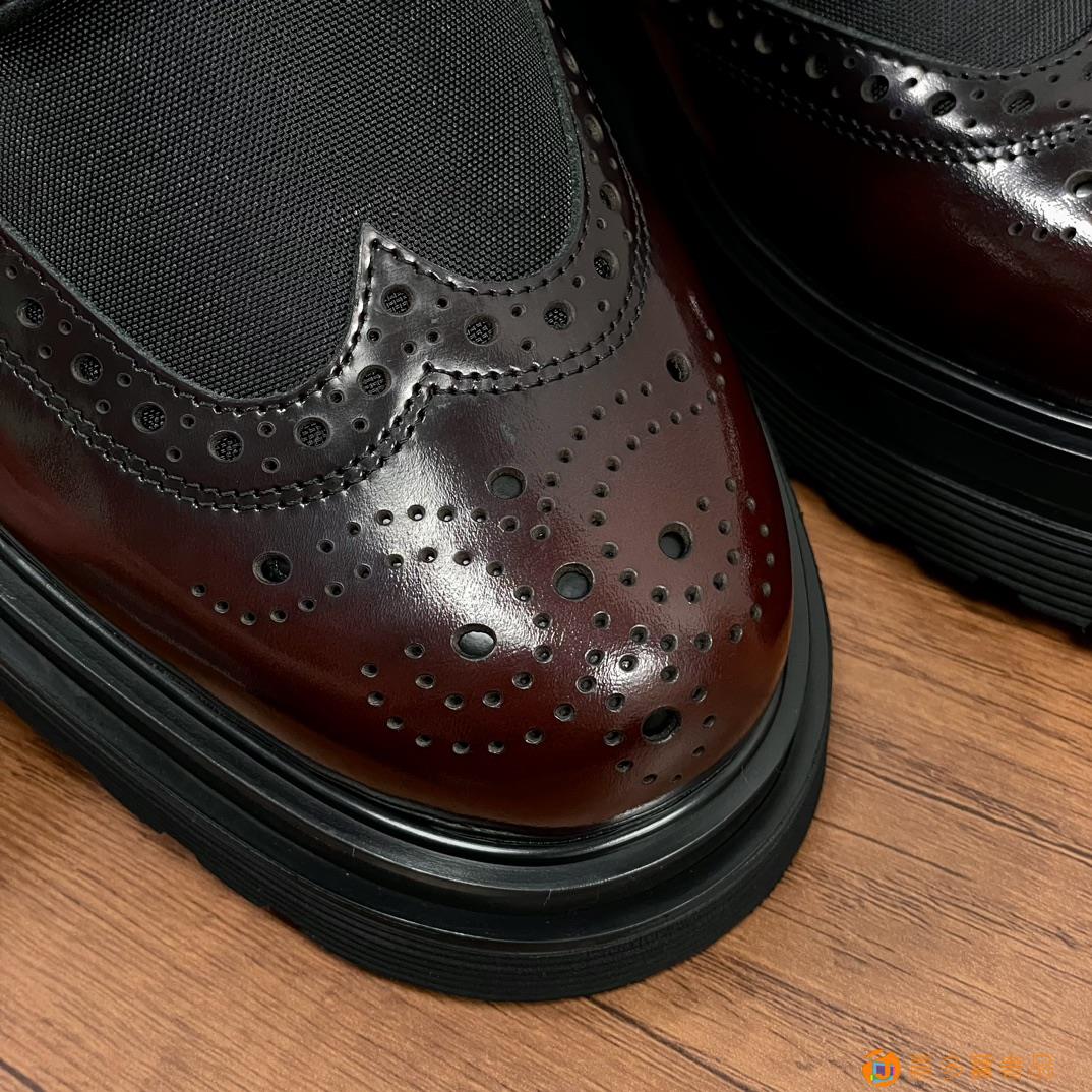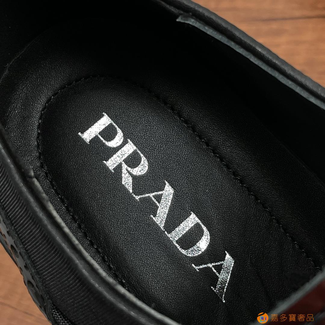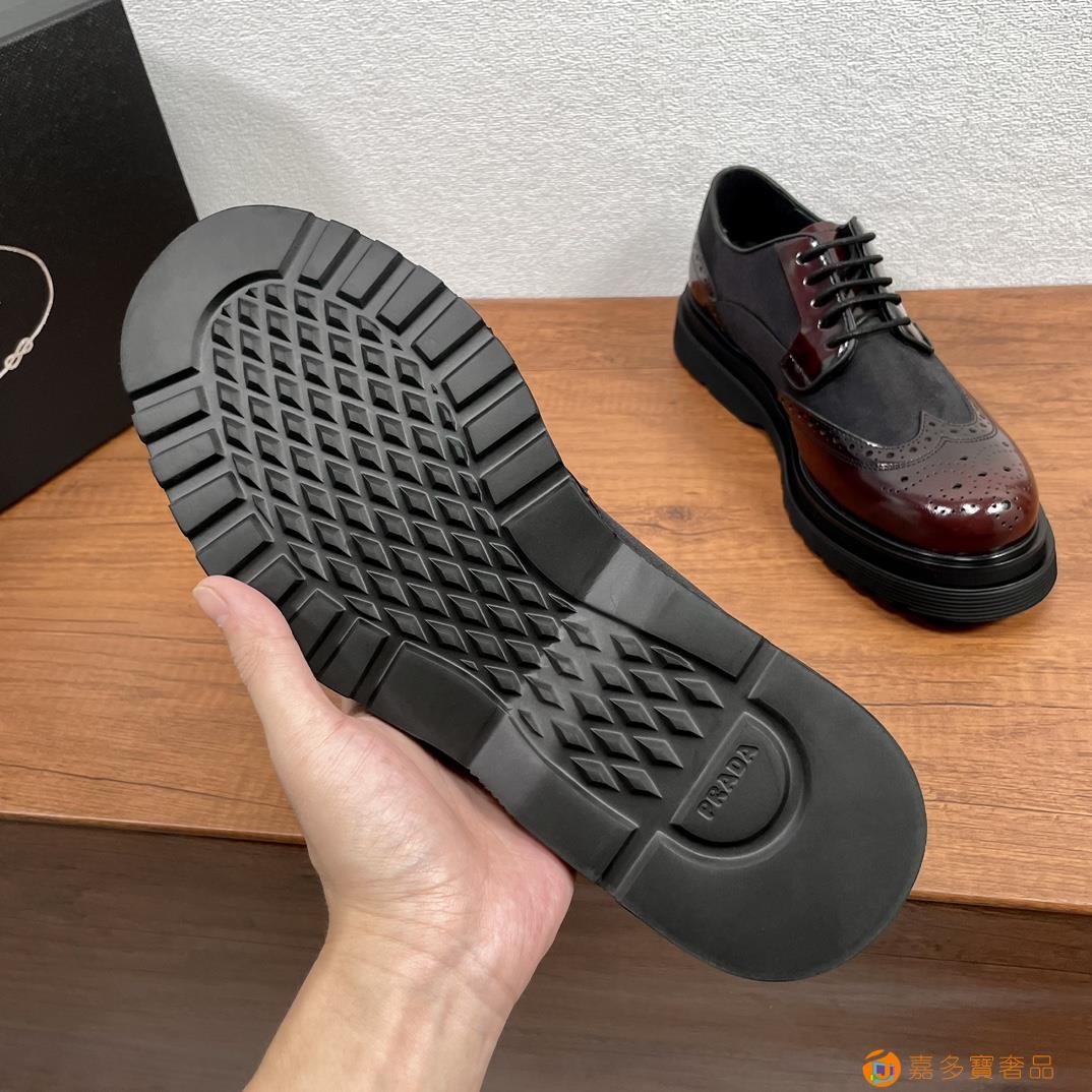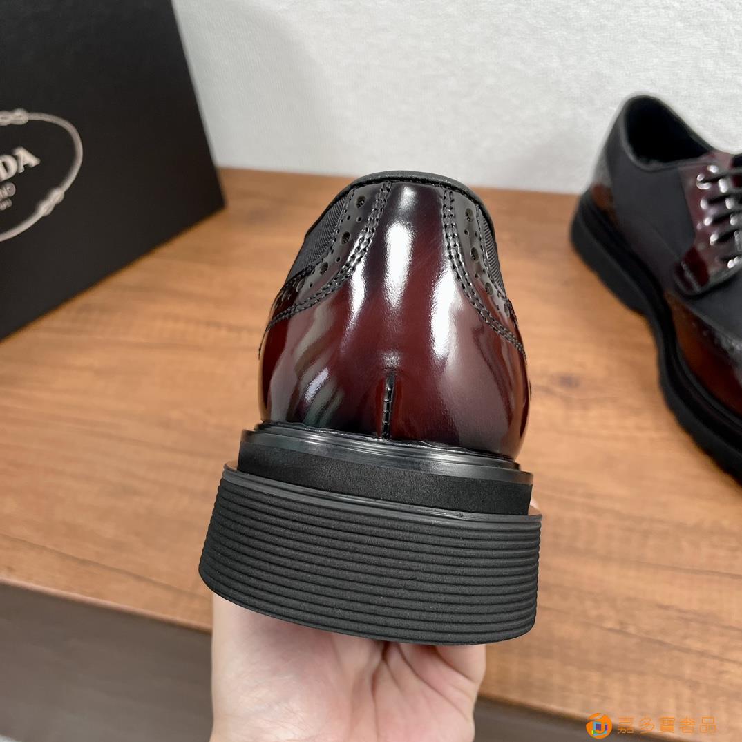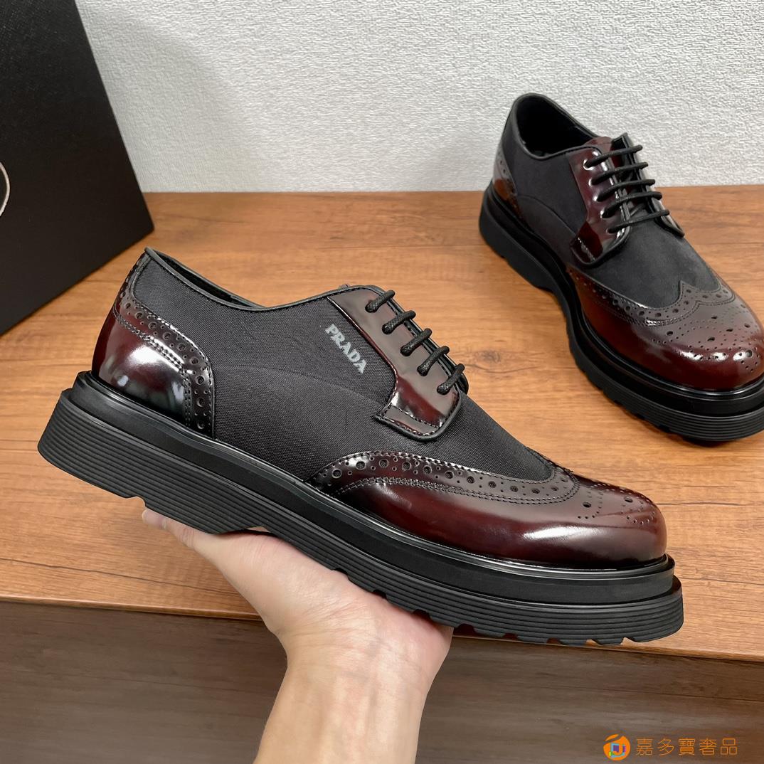 RADA/普拉达 男士新款皮革织物系带德比鞋