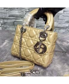 DIOR迪奥 杏色银扣 羊皮 女士手提包/单肩斜挎包