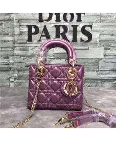 DIOR迪奥 紫色金扣 羊皮 女士手提包/单肩斜挎包