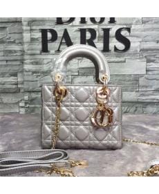 DIOR迪奥 浅灰色金扣 羊皮 女士手提包/单肩斜挎包