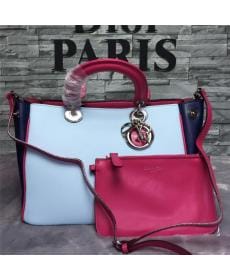 DIOR迪奥/头层牛皮/三色拼接/女士/手提包/附肩带/大号/中号/小号