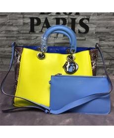 DIOR迪奥/头层牛皮/黄色配蛇纹/女士/手提包/附肩带/大号/中号
