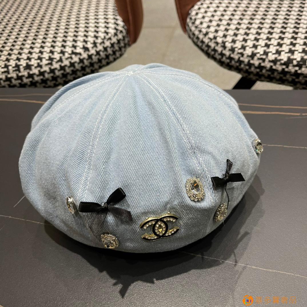 Chanel香奈儿早秋款牛仔贝雷帽纯色百搭可爱蓓蕾帽子女生韩