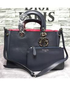 DIOR迪奥/头层牛皮/女士/宝蓝色/手提包/附肩带/大号/中号/小号