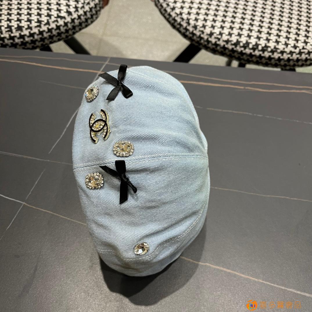 Chanel香奈儿早秋款牛仔贝雷帽纯色百搭可爱蓓蕾帽子女生韩