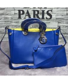 DIOR迪奥/头层牛皮/女士/宝蓝色/手提包/附肩带/大号/中号/小号