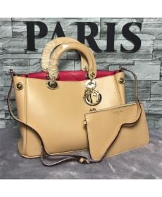 DIOR迪奥/头层牛皮/女士/浅杏色/手提包/附肩带/大号/中号/小号