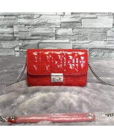 DIOR迪奥/头层牛皮/漆皮/女士/大红/链条包/单肩斜挎包