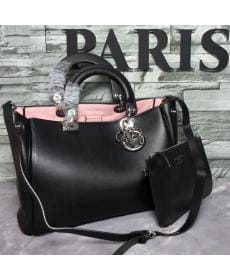DIOR迪奥/头层牛皮/女士/黑色配粉里/手提包/附肩带/大号/中号/小号