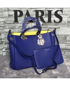 DIOR迪奥/头层牛皮/荔枝纹/女士/宝蓝色/手提包/附肩带/大号/中号/小号