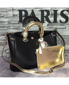 DIOR迪奥/头层牛皮/女士/黑配金/手提包/附肩带/大号/中号/小号