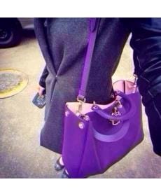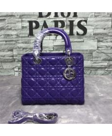 DIOR迪奥/五格羊皮/银扣/女士/紫色/戴妃包/手提包/单肩包