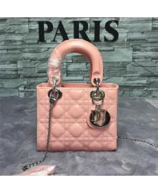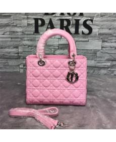 DIOR迪奥/五格羊皮/银扣/女士/粉色/戴妃包/手提包/单肩包