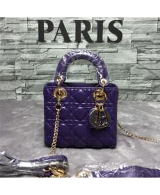 DIOR迪奥/三格羊皮/金扣/女士/紫色/戴妃包/手提包/单肩包