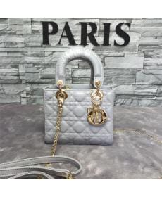 DIOR迪奥/三格羊皮/金扣/女士/浅灰色/戴妃包/手提包/单肩包