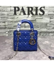DIOR迪奥/三格羊皮/银扣/女士/宝蓝色/戴妃包/手提包/单肩包