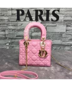 DIOR迪奥/五格羊皮/金扣/女士/粉色/戴妃包/手提包/单肩包