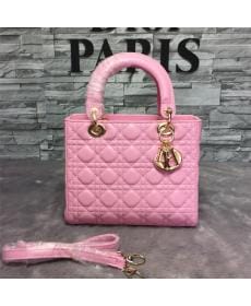 DIOR迪奥/五格羊皮/金扣/女士/粉色/戴妃包/手提包/单肩包
