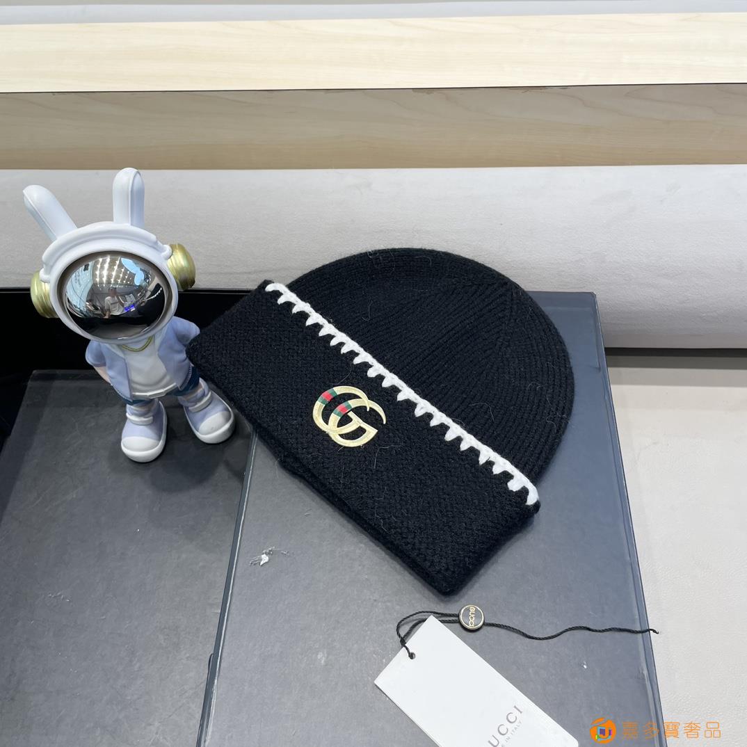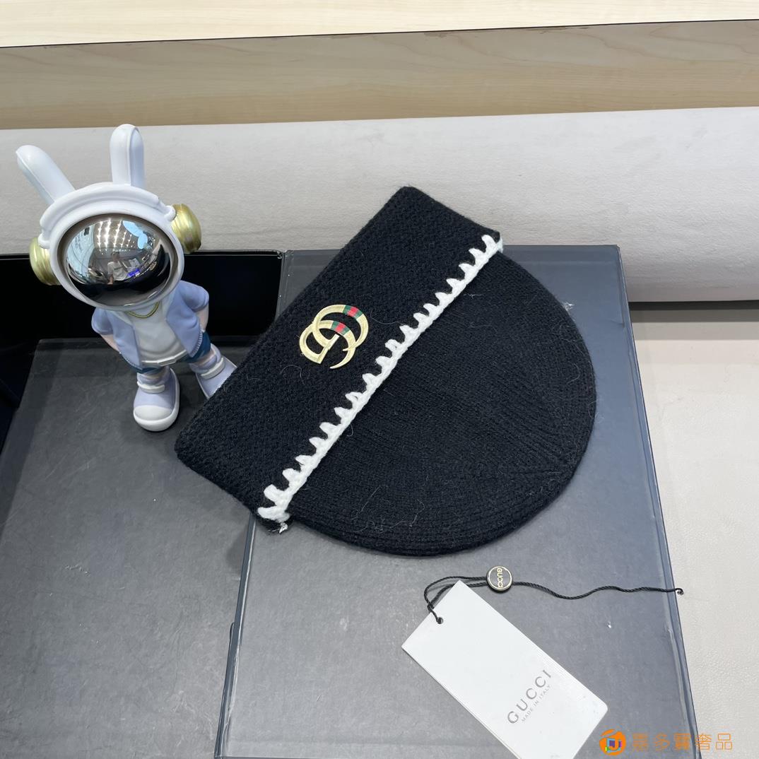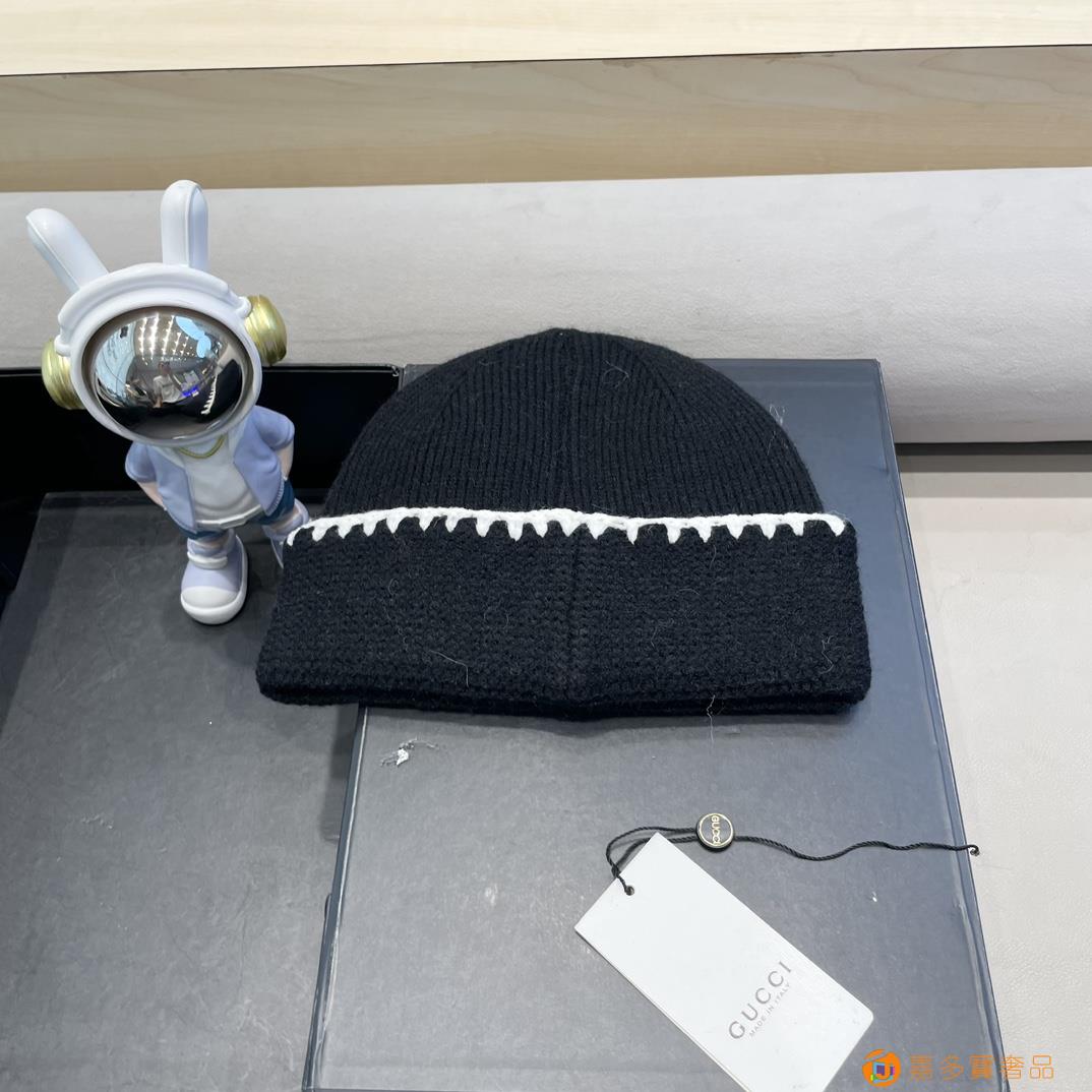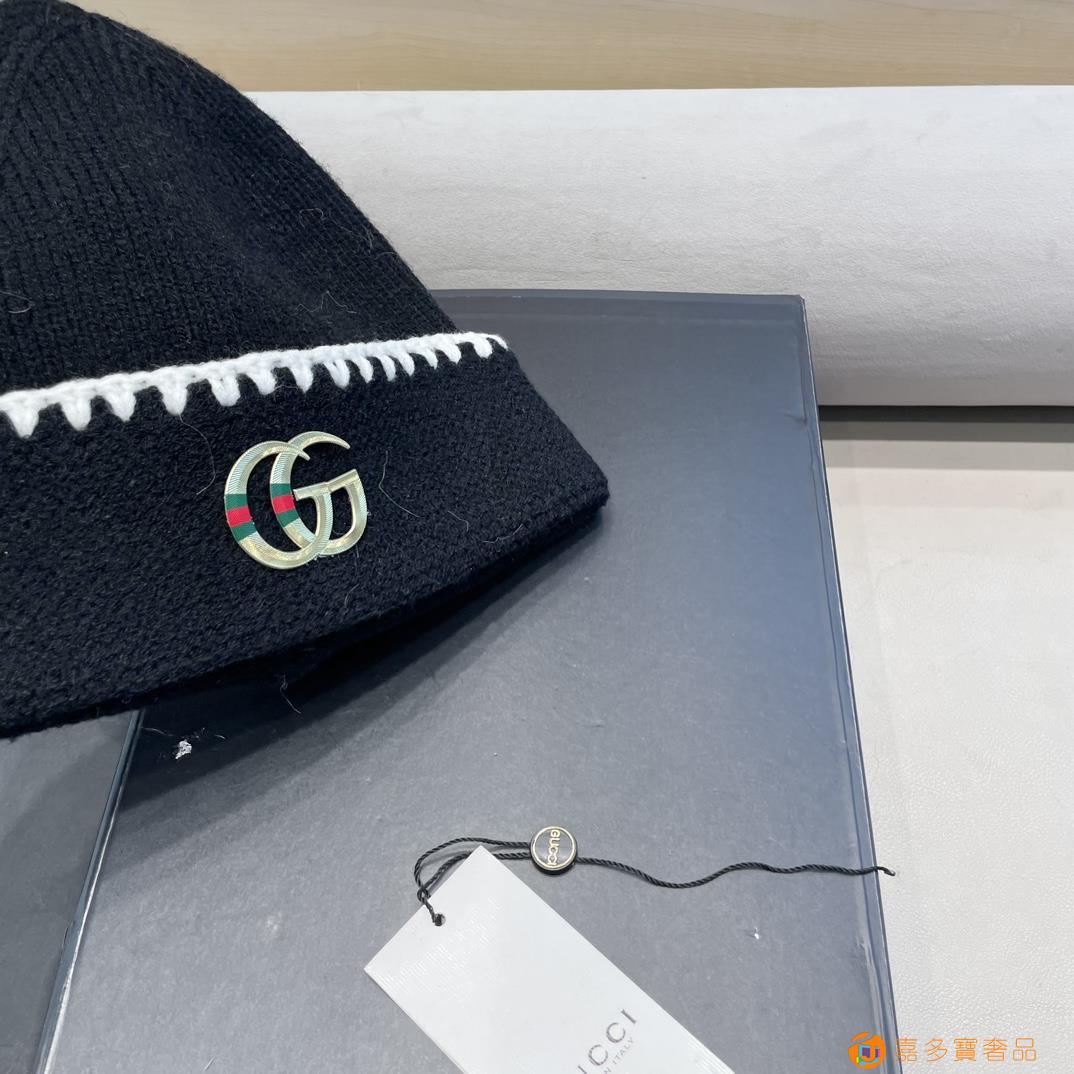 Gucci 韩国fever同款白色毛线帽女冬季保暖针织帽子大
