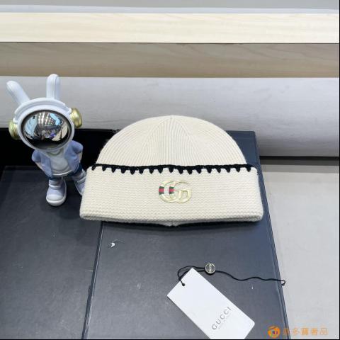 Gucci 韩国fever同款白色毛线帽女冬季保暖针织帽子大