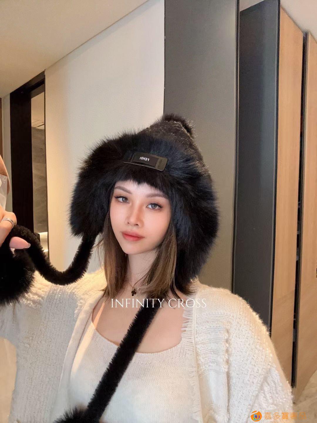 芬迪fendl秋冬季新款仿水貂毛字母渔夫帽韩系气质保暖护耳拼