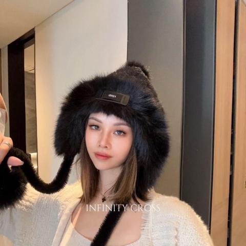 芬迪fendl秋冬季新款仿水貂毛字母渔夫帽韩系气质保暖护耳拼
