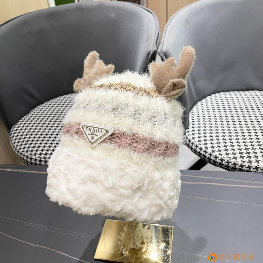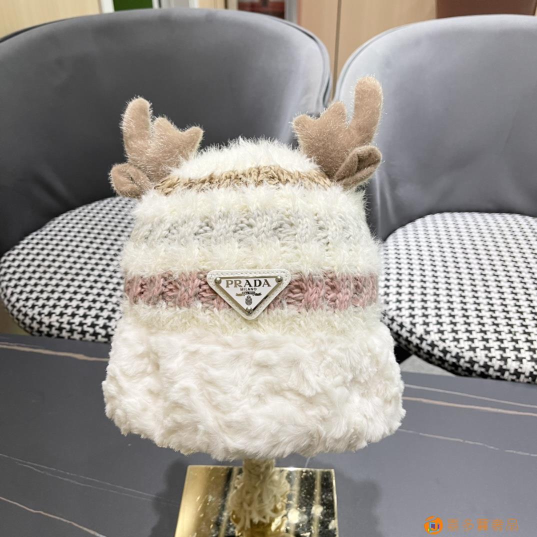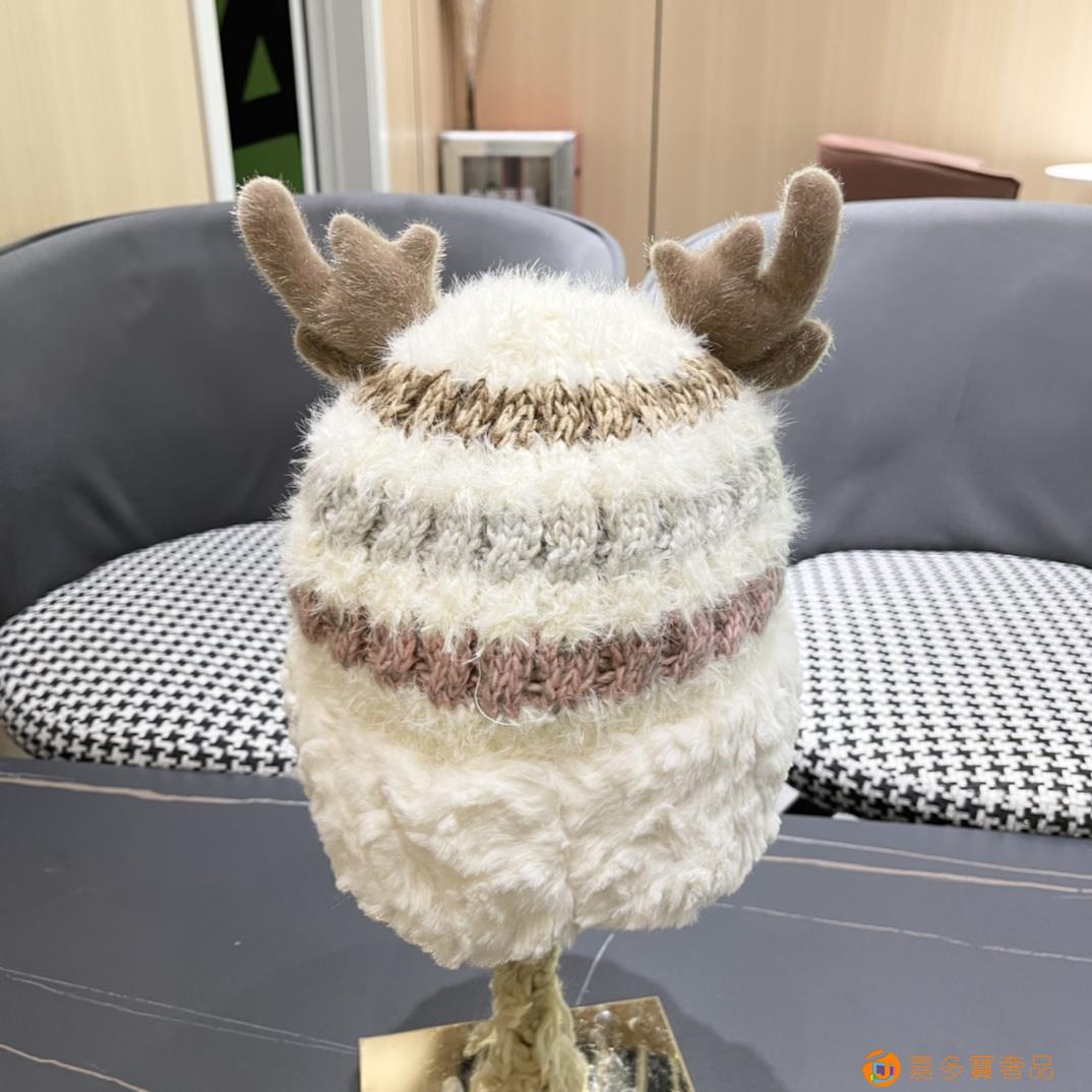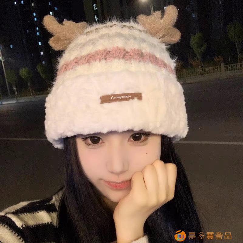 普拉达rada秋冬可爱鹿角针织毛线帽中青年帽子女保暖护耳加绒
