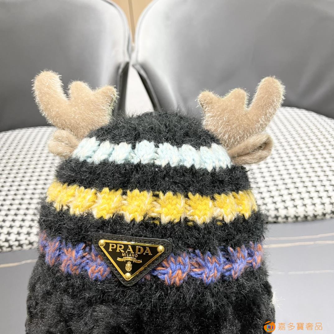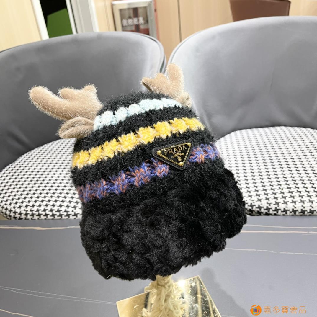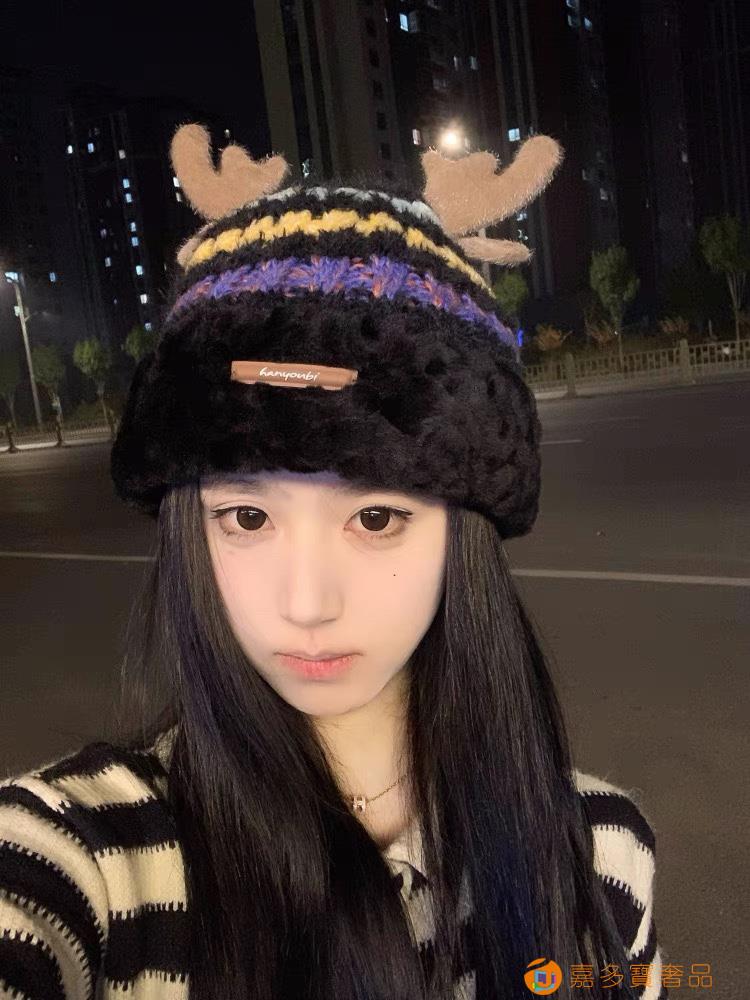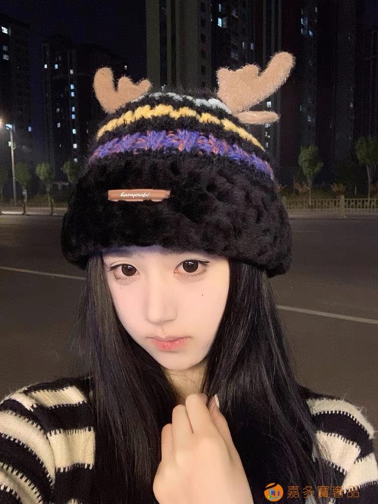 普拉达rada秋冬可爱鹿角针织毛线帽中青年帽子女保暖护耳加绒