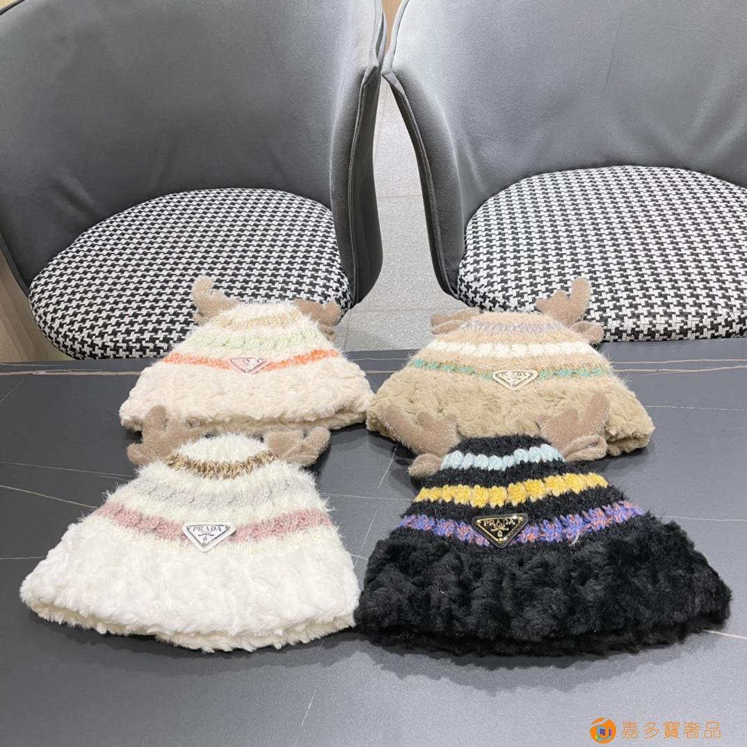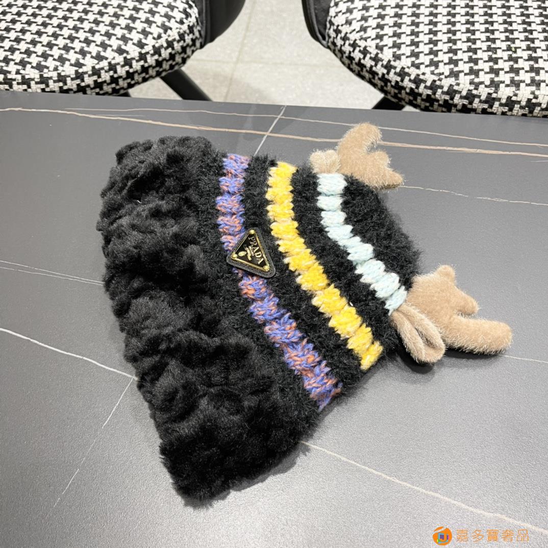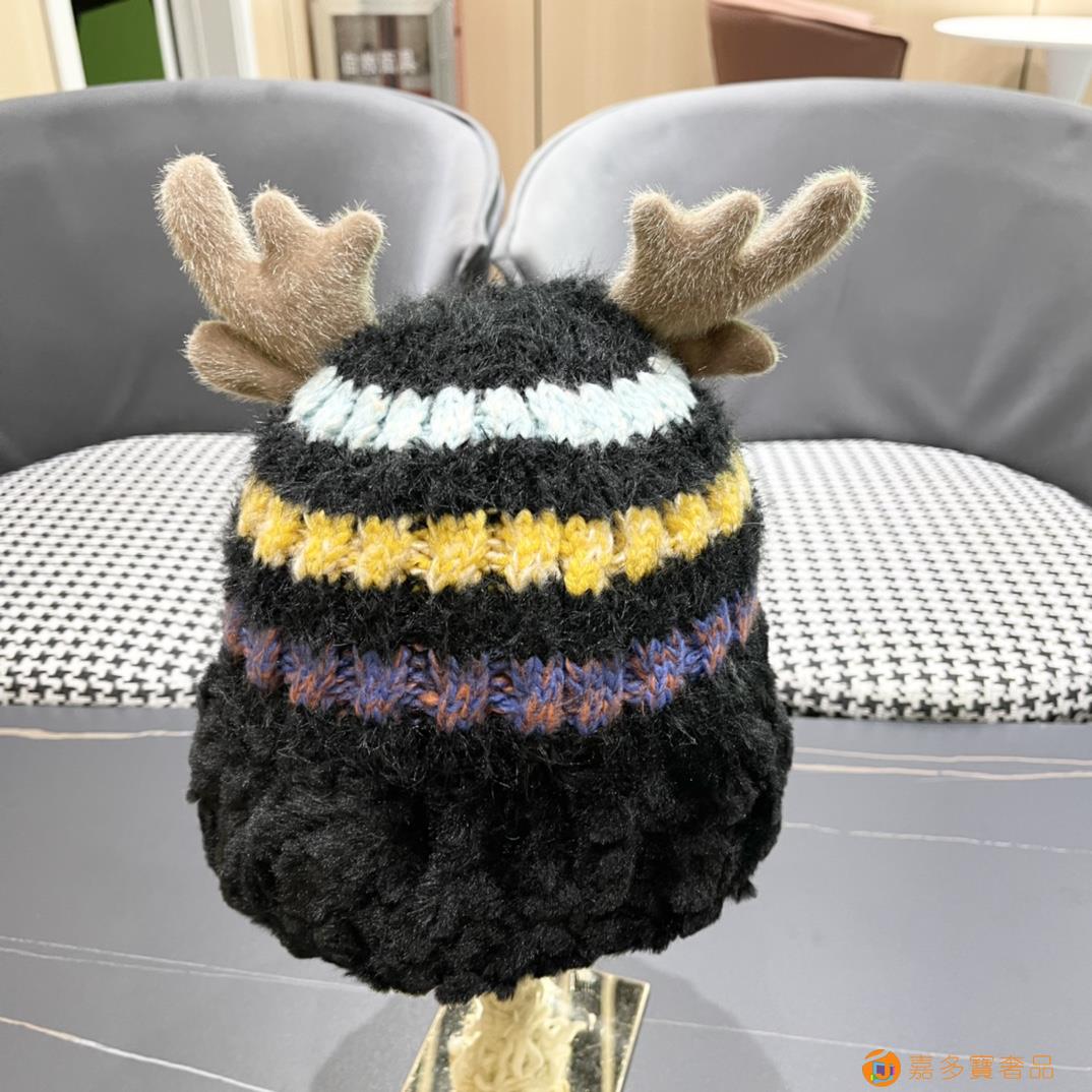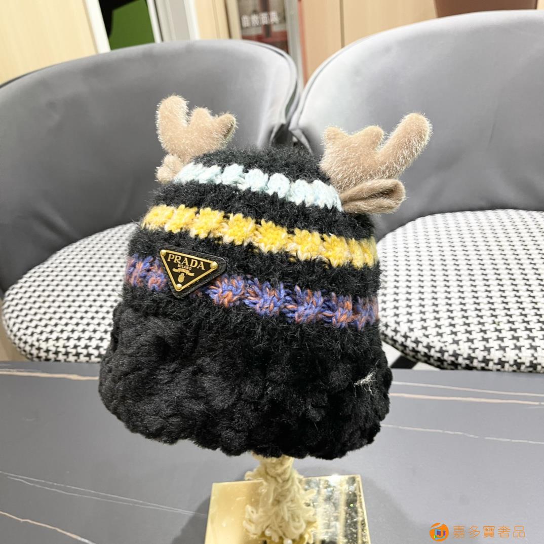 普拉达rada秋冬可爱鹿角针织毛线帽中青年帽子女保暖护耳加绒