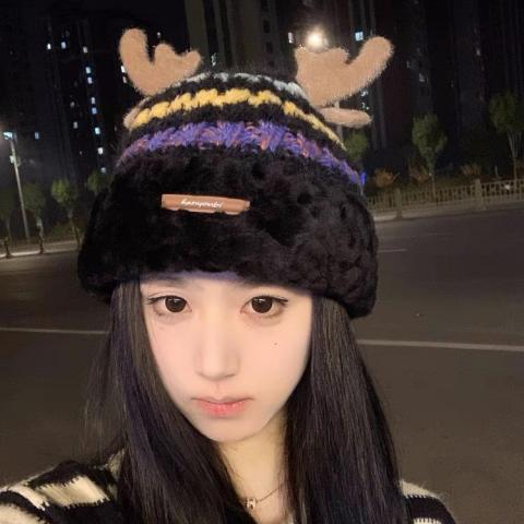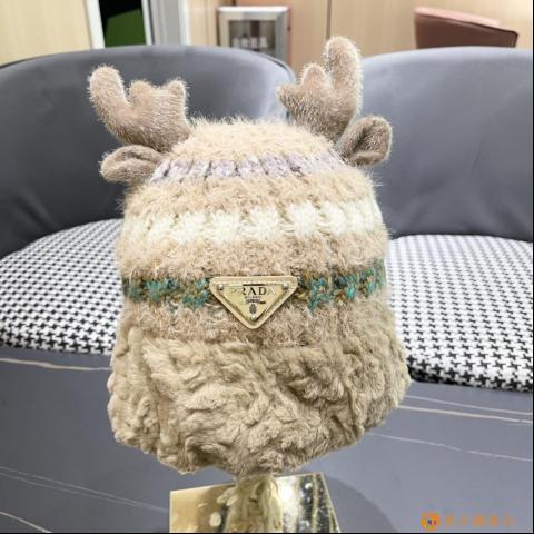 普拉达rada秋冬可爱鹿角针织毛线帽中青年帽子女保暖护耳加绒