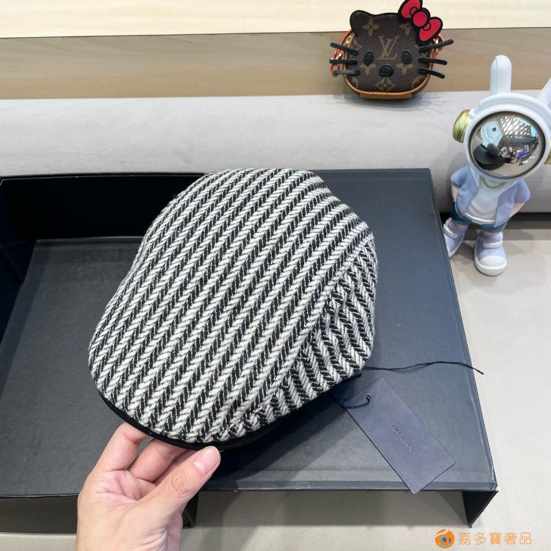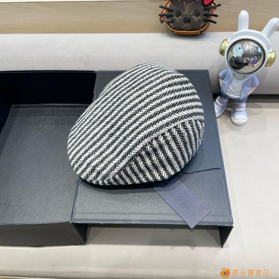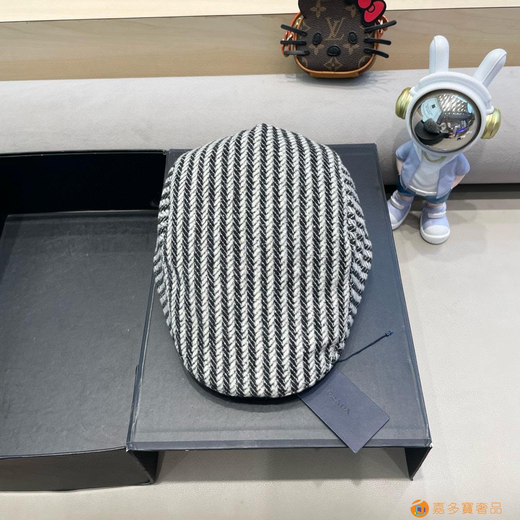 rada普拉达拼色条纹前进帽女秋冬新款英伦风复古贝雷帽大头围