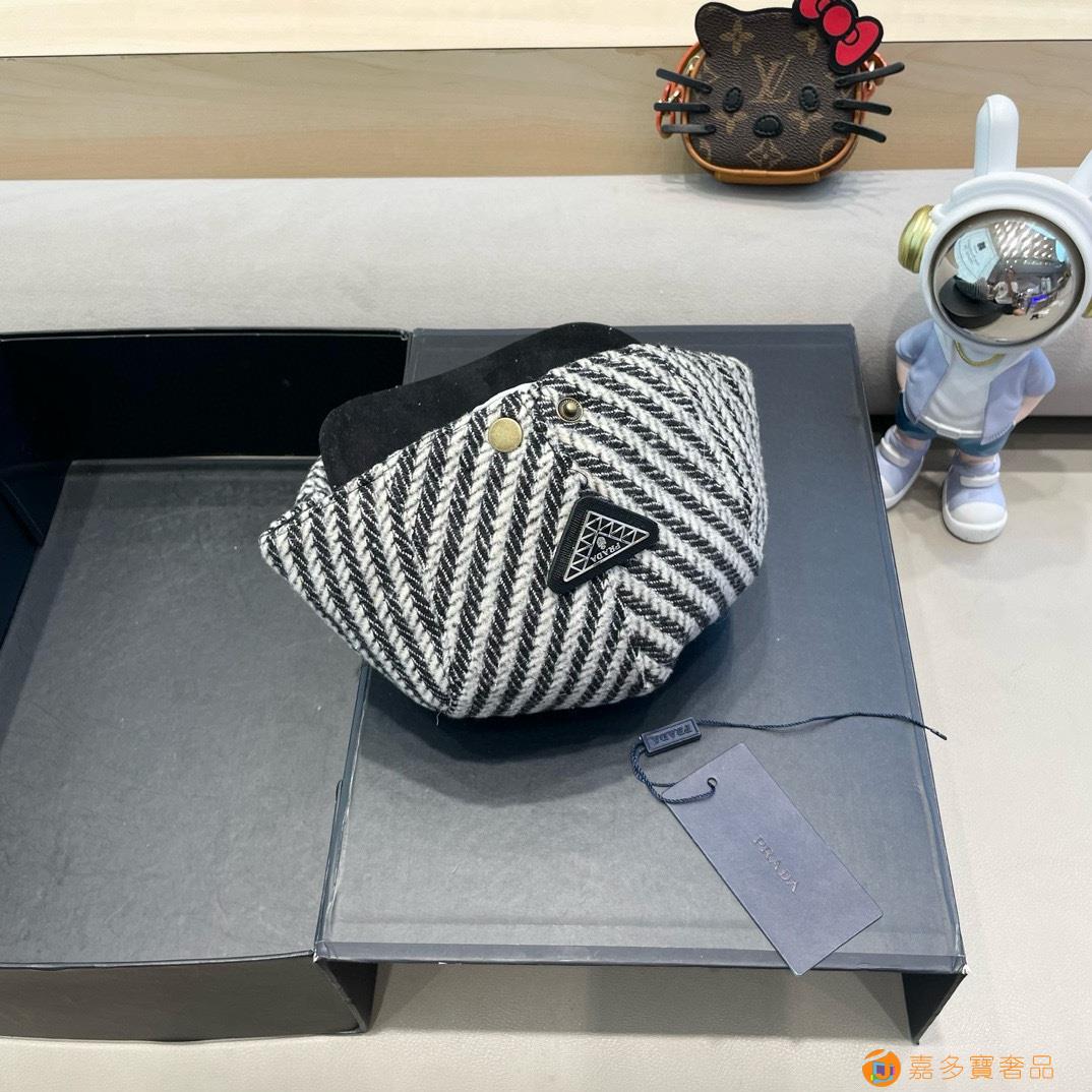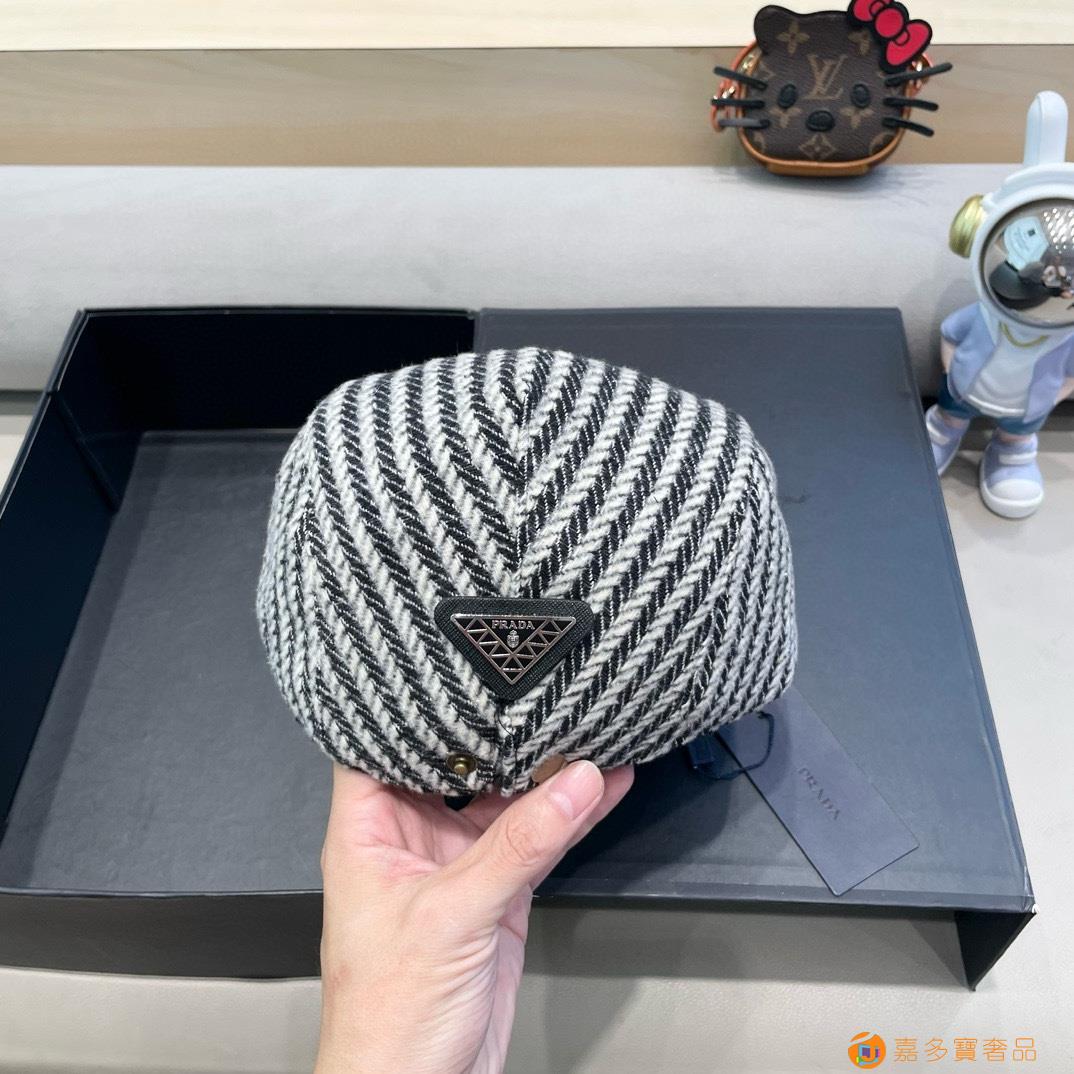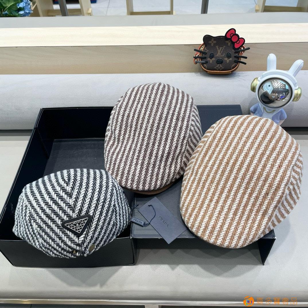 rada普拉达拼色条纹前进帽女秋冬新款英伦风复古贝雷帽大头围