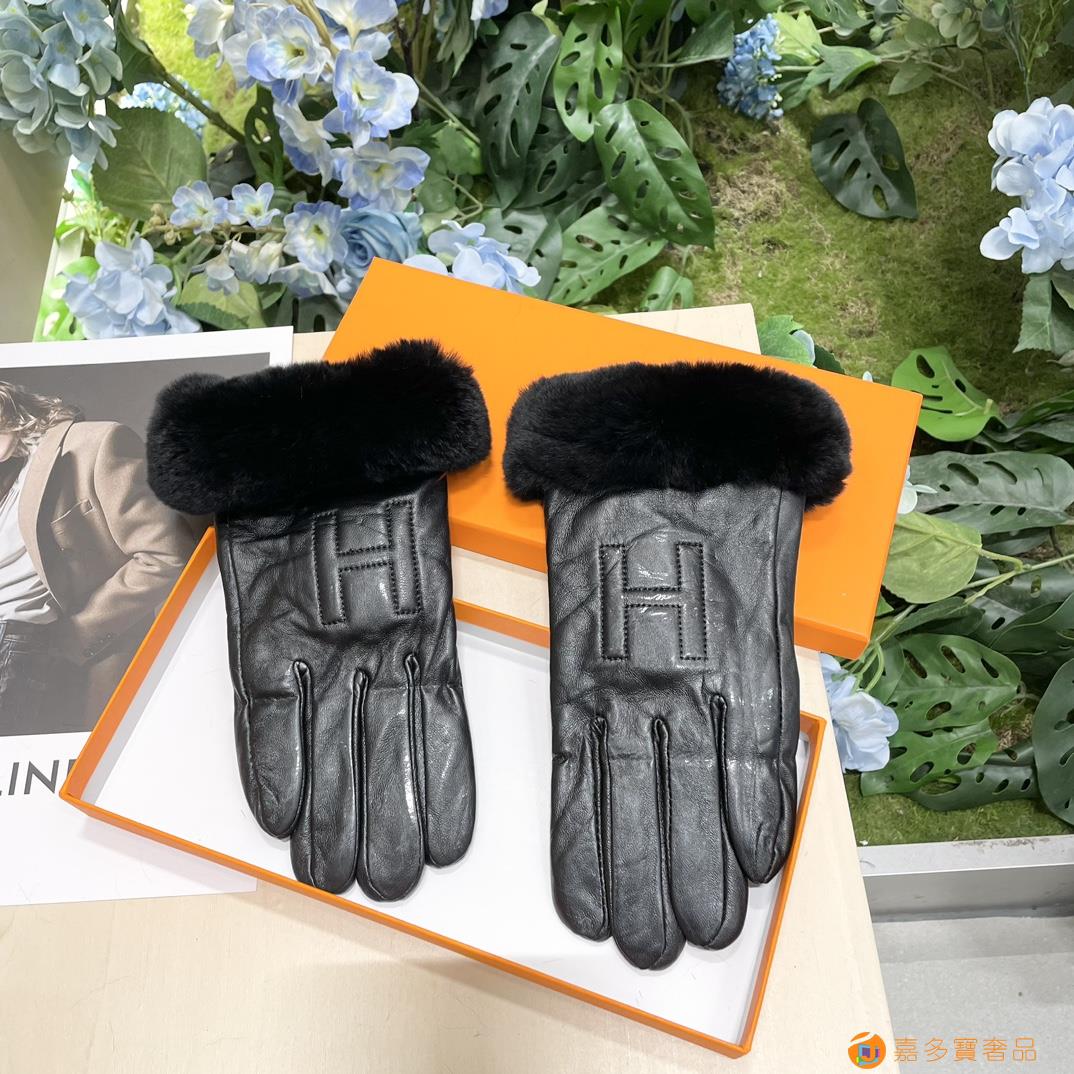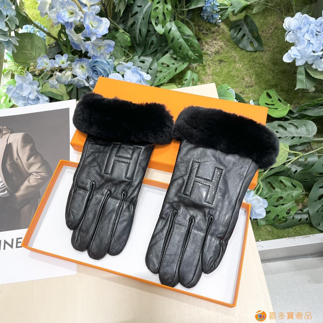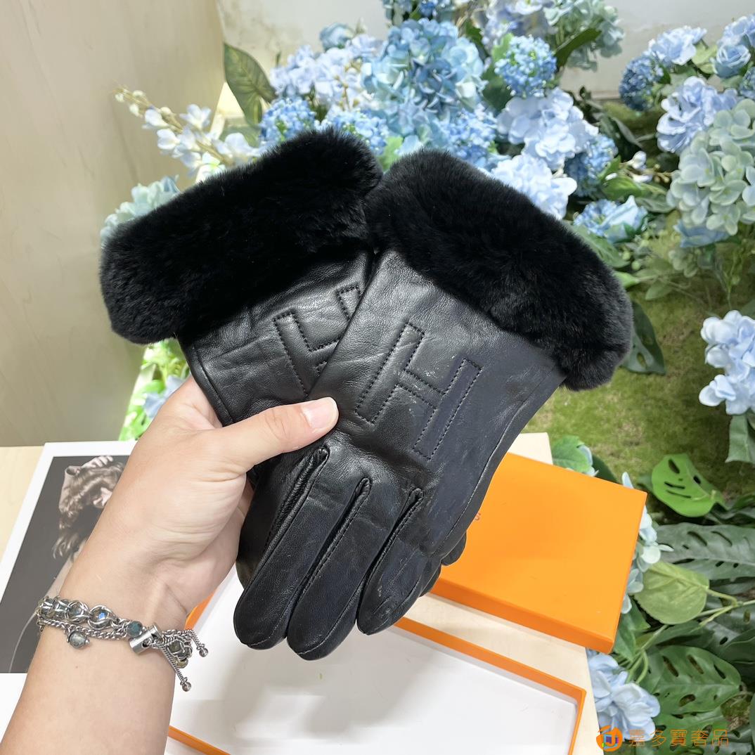 配包装?女款✨?爱马仕新款秋冬懒兔毛H字母羊皮刺绣手套?手机