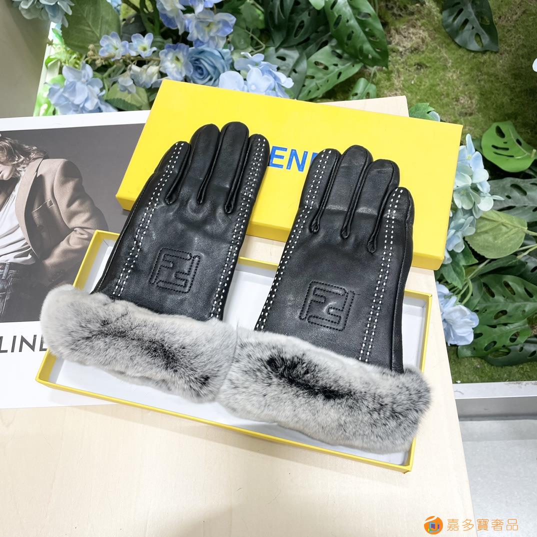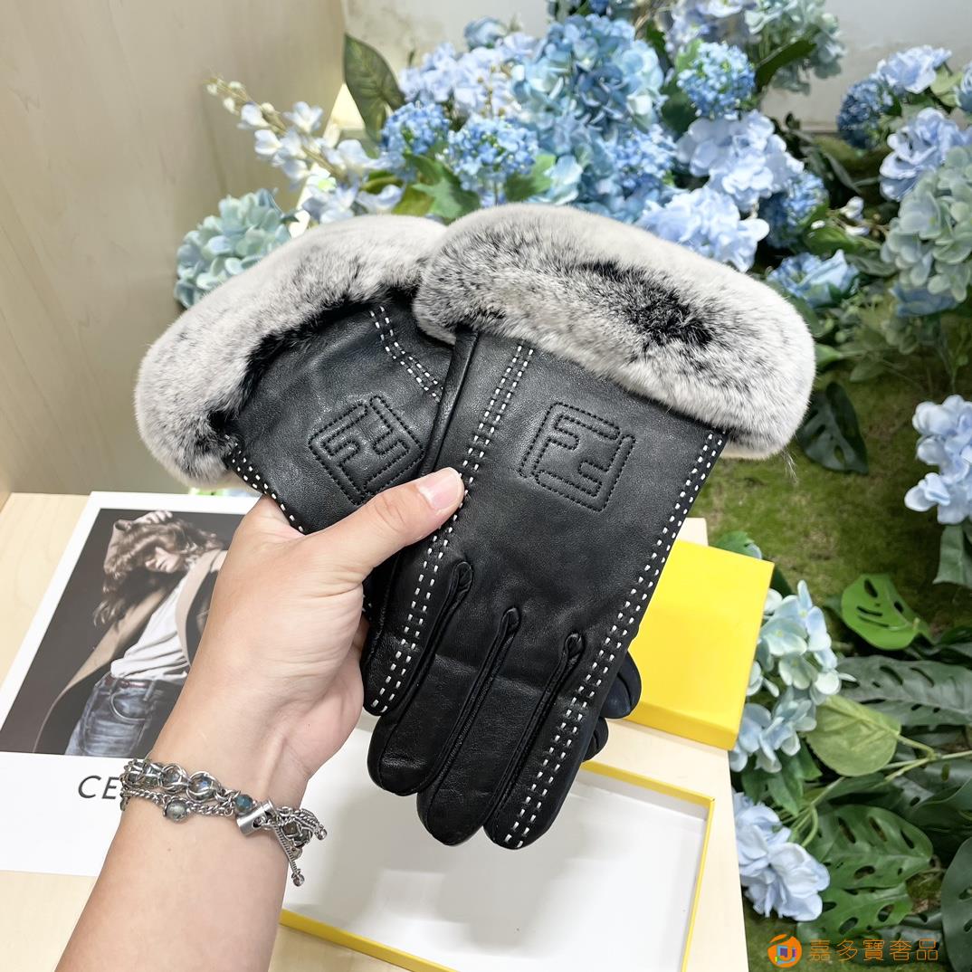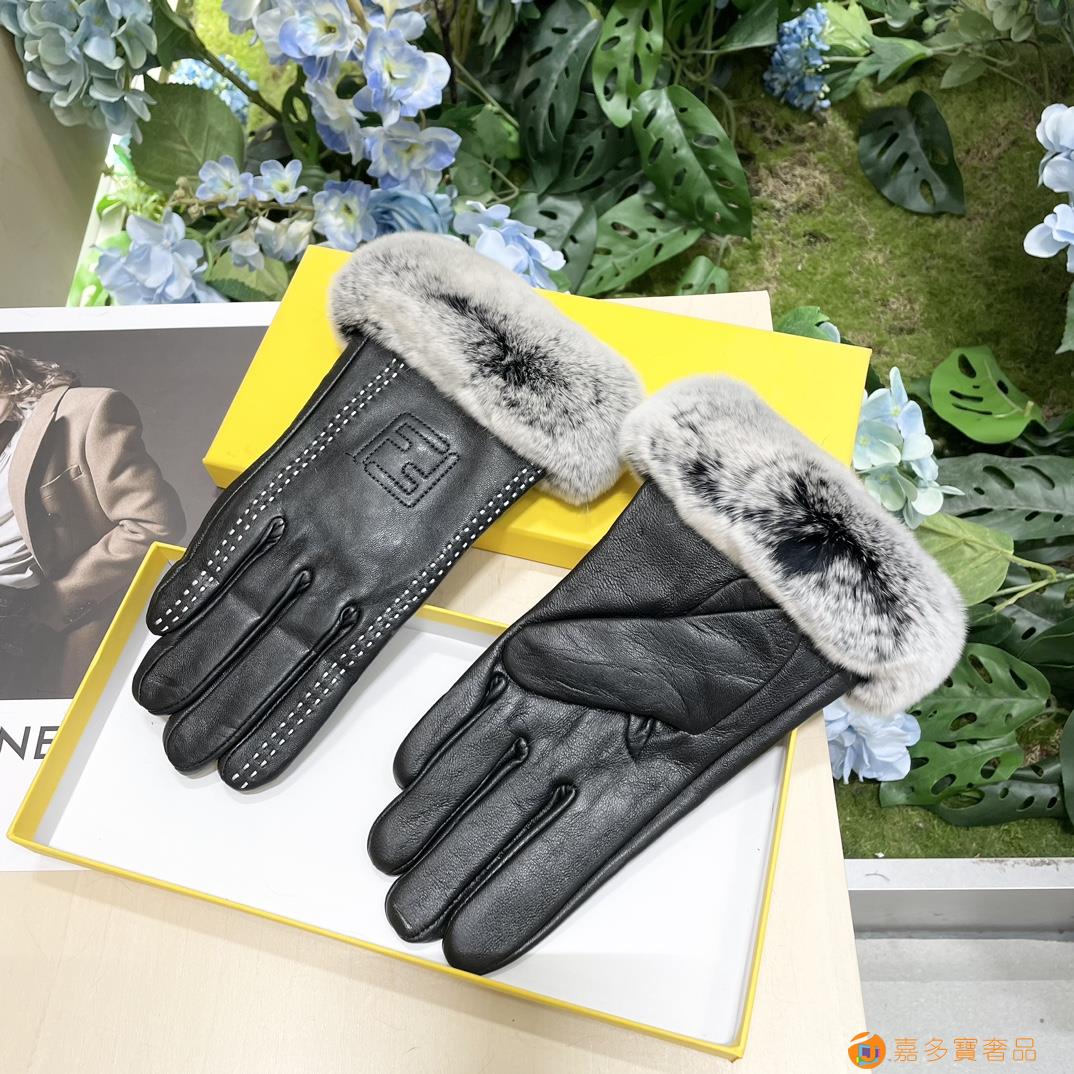 配包装✨女款✅芬迪FENDI新款秋冬懒兔毛CD羊皮刺绣手套?